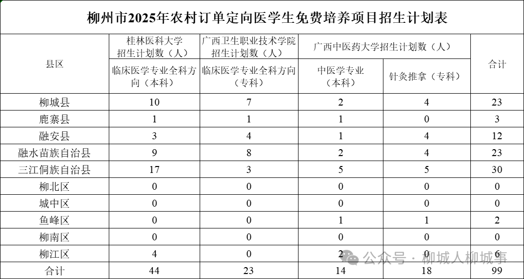 2025年農(nóng)村訂單定向醫(yī)學生免費培養(yǎng)項目在柳招生99人,其中,本科58人,??疲ǜ呗殻?1人,培養(yǎng)院校分別為桂林醫(yī)科大學、廣西中醫(yī)藥大學、廣西衛(wèi)生職業(yè)技術學院,培養(yǎng)專業(yè)為臨床醫(yī)學專業(yè)全科方向、中醫(yī)學專業(yè)(本科)及針灸推拿(??疲?/strong>