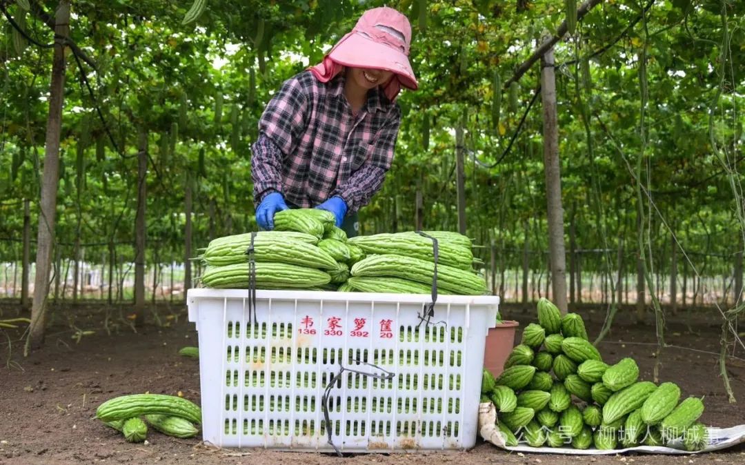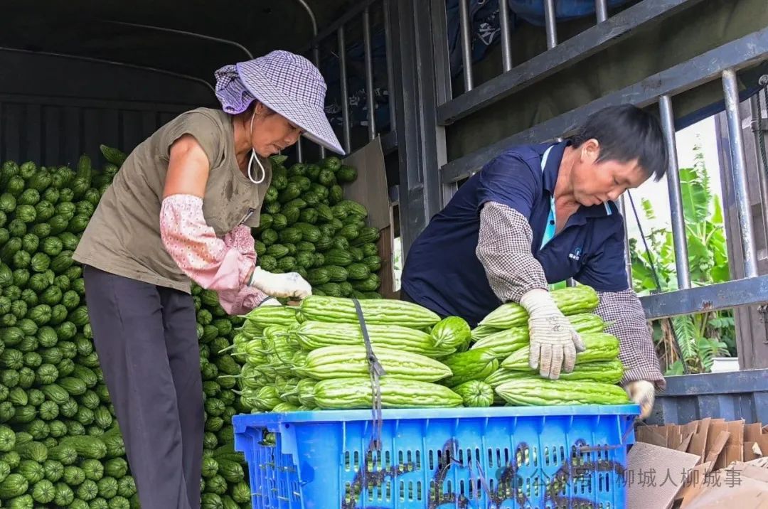 盛夏時(shí)節(jié),苦瓜迎來豐收。在柳城縣社沖鄉(xiāng)洛文村大湖屯的苦瓜種植基地,一輛大貨車停在基地旁,種植戶們穿梭其中,將一筐筐搬運(yùn)上車。這些新鮮的苦瓜即將銷往廣州,收購價(jià)為0.3元每斤。