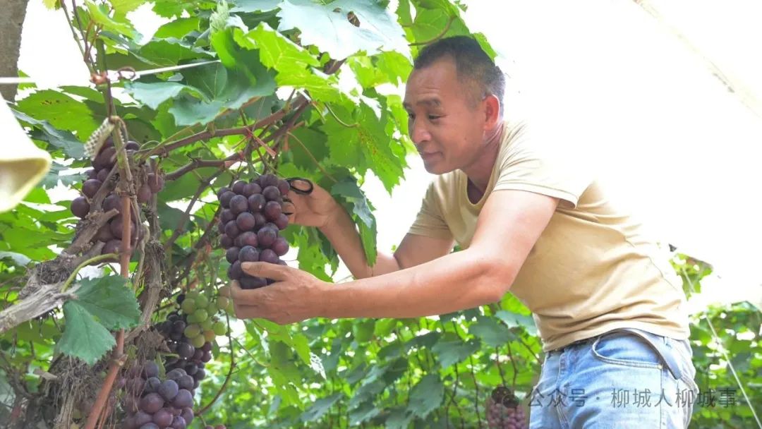 今年,韋建勇種植的夏黑葡萄畝產(chǎn)約3000?斤。更關(guān)鍵的是,夏黑葡萄成熟時間早,比其他品種的葡萄大約早20?天上市。這一 “早” 字,讓他搶占了市場先機(jī),目前葡萄在地頭的批發(fā)價能賣到5?元每斤。韋建勇每天能采摘300?斤左右的成熟葡萄。