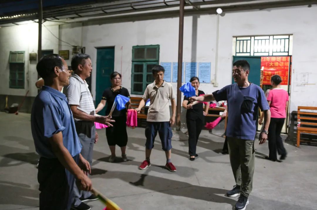 當天晚上,蔣劍還對大埔鎮(zhèn)靖西彩調隊進行彩調表演的唱腔、表演身段、彩調表演道具應用等進行具體指導,彩調隊員們邊聽邊看邊跟學,熱情高漲,不時與老師交流探討,現場學習氛圍濃厚。