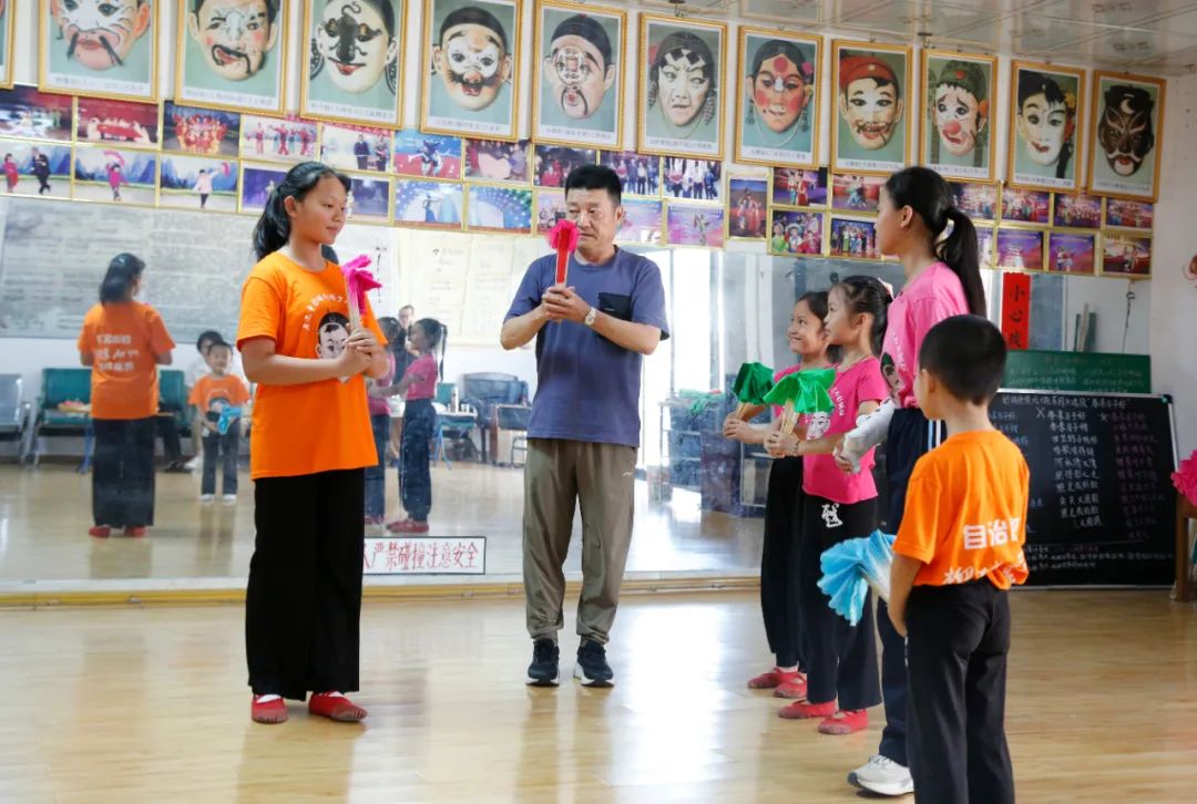 7月8日,廣西戲劇院彩調(diào)團(tuán)團(tuán)長(zhǎng)蔣劍、廣西戲劇家協(xié)會(huì)副秘書長(zhǎng)陽崇波到柳城縣,對(duì)柳城縣“老還童”彩調(diào)劇團(tuán)少兒彩調(diào)班參加第29屆中國(guó)少兒戲曲小梅花薈萃比賽的小演員進(jìn)行專業(yè)指導(dǎo),提升小演員們的彩調(diào)表演技能與演唱技巧,助力他們?cè)诒荣愔腥〉脙?yōu)異成績(jī)。