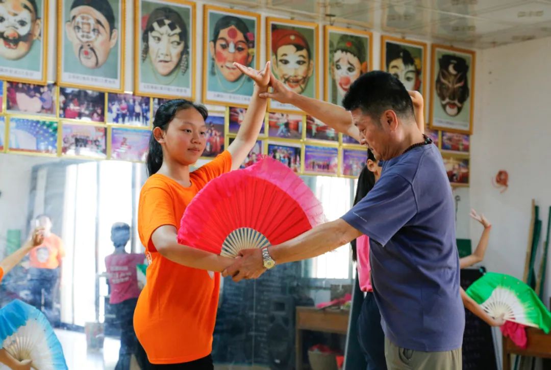 蔣劍在指導(dǎo)過程中表示,學(xué)好彩調(diào),扎實(shí)的“四功”“五發(fā)”基本功必不可少,演員需通過“手、眼、身、發(fā)、步”等肢體動(dòng)作,完成“唱、念、做、舞”等表演形式。蔣劍針對(duì)每位小演員的特點(diǎn),對(duì)他們進(jìn)行了一對(duì)一的針對(duì)性輔導(dǎo),從扇花、十字步等動(dòng)作,再到唱腔,蔣劍一招一式地教,小演員們一板一眼地學(xué),爭(zhēng)取能在原有基礎(chǔ)上有所提升。