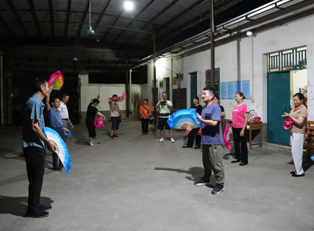 當(dāng)天晚上,蔣劍還對(duì)大埔鎮(zhèn)靖西彩調(diào)隊(duì)進(jìn)行彩調(diào)表演的唱腔、表演身段、彩調(diào)表演道具應(yīng)用等進(jìn)行具體指導(dǎo),彩調(diào)隊(duì)員們邊聽邊看邊跟學(xué),熱情高漲,不時(shí)與老師交流探討,現(xiàn)場(chǎng)學(xué)習(xí)氛圍濃厚。