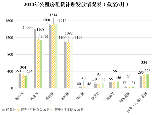 2024年,自治區(qū)預(yù)下達(dá)柳州市公租房租賃補(bǔ)貼發(fā)放目標(biāo)任務(wù)4987戶。截至2024年6月30日,實(shí)際發(fā)放4755戶,完成年度目標(biāo)任務(wù)的95.35%。