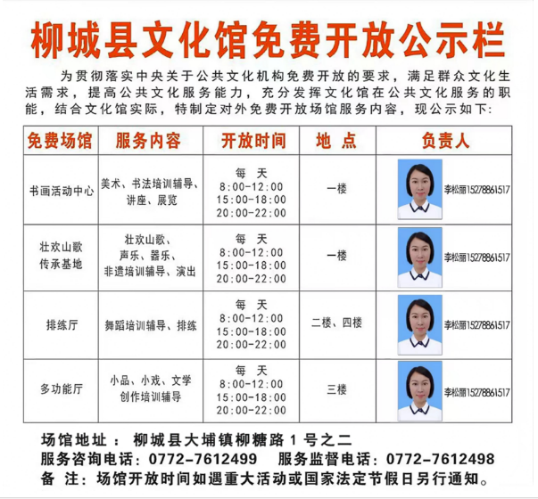 柳城縣文化館免費(fèi)開放公示欄