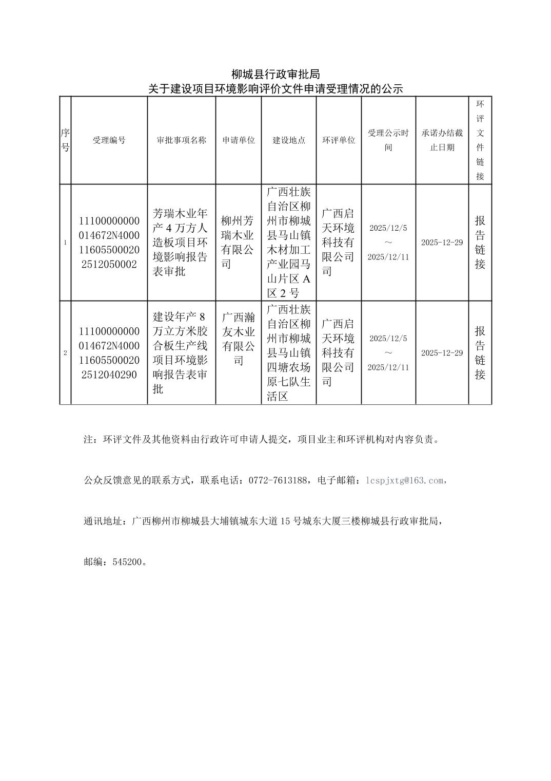柳城縣行政審批局關(guān)于建設(shè)項(xiàng)目環(huán)境影響評(píng)價(jià)文件申請(qǐng)受理情況的公示