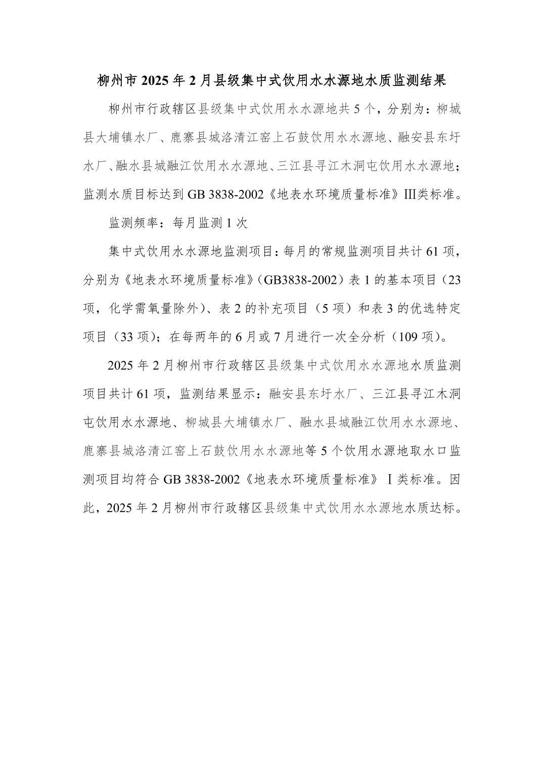 2025年2月份柳州市縣級(jí)飲用水質(zhì)量報(bào)告