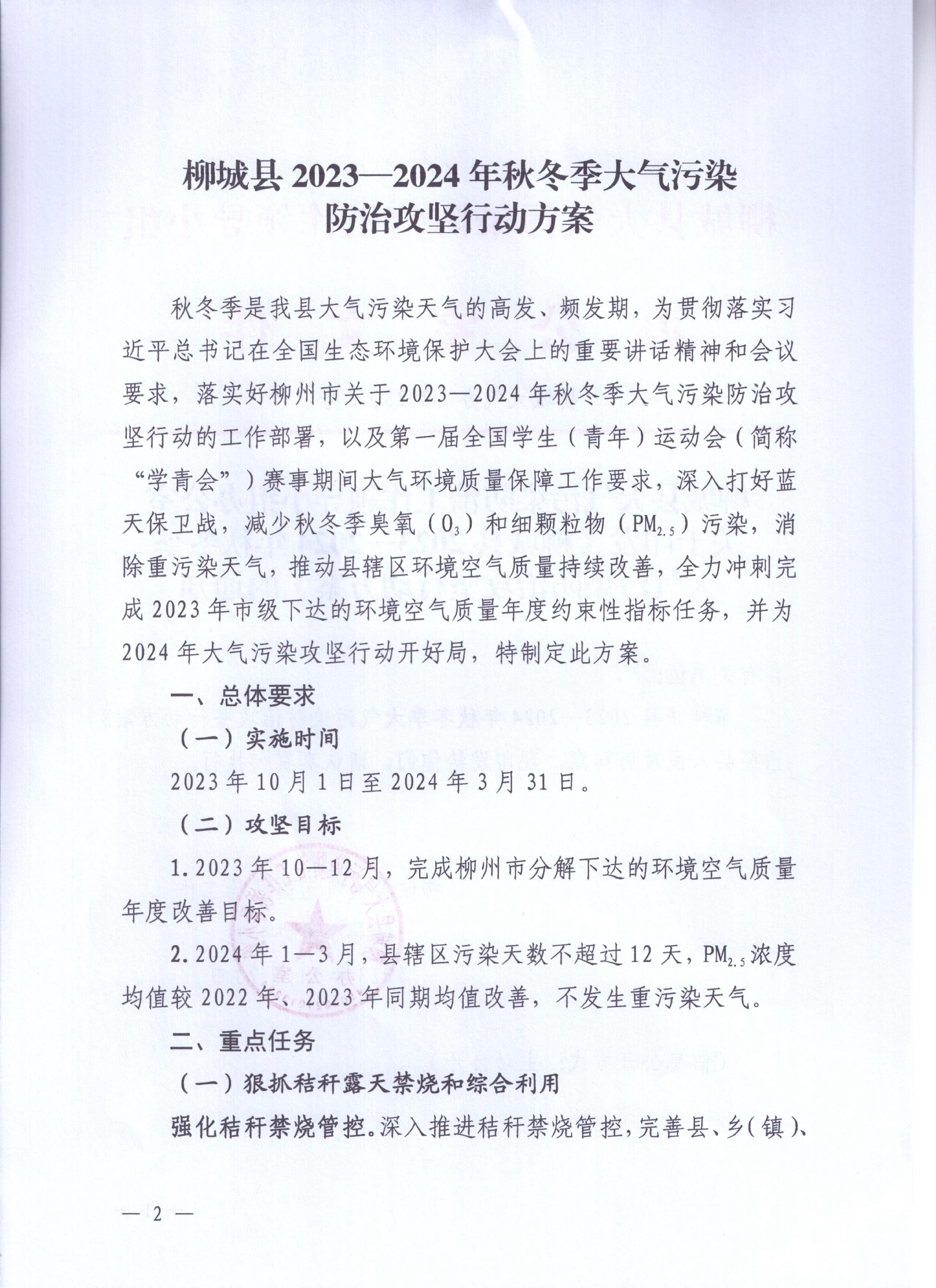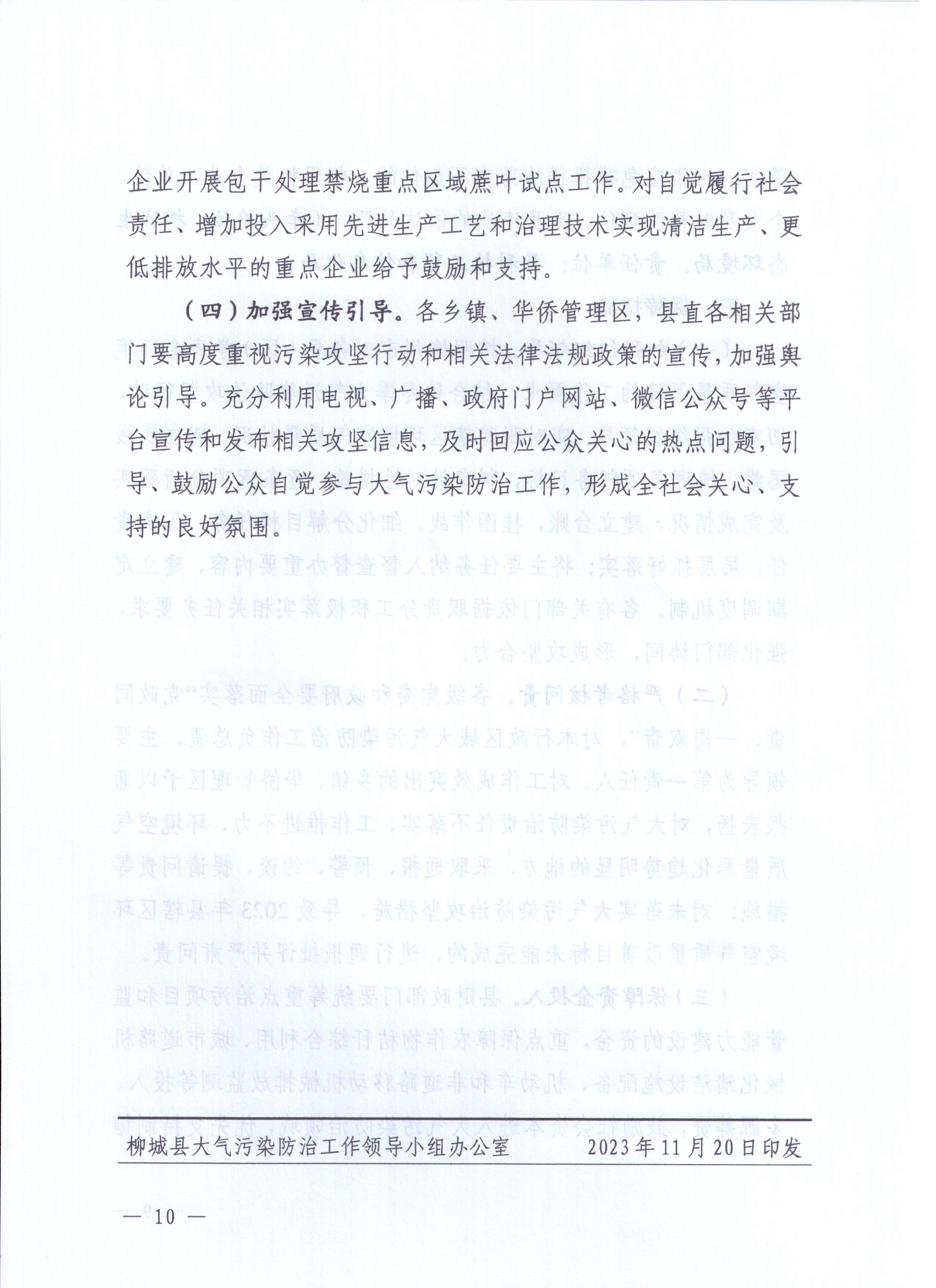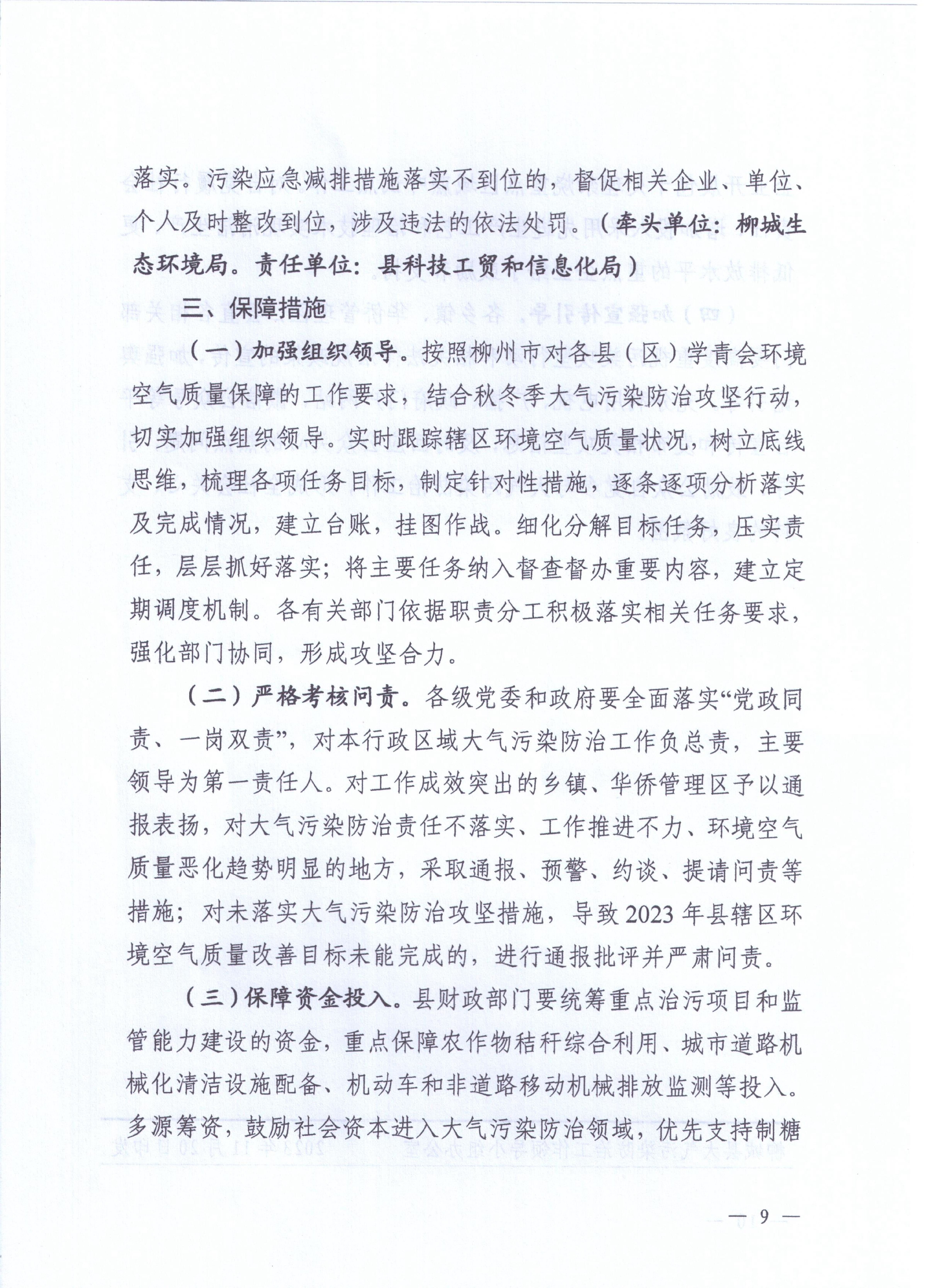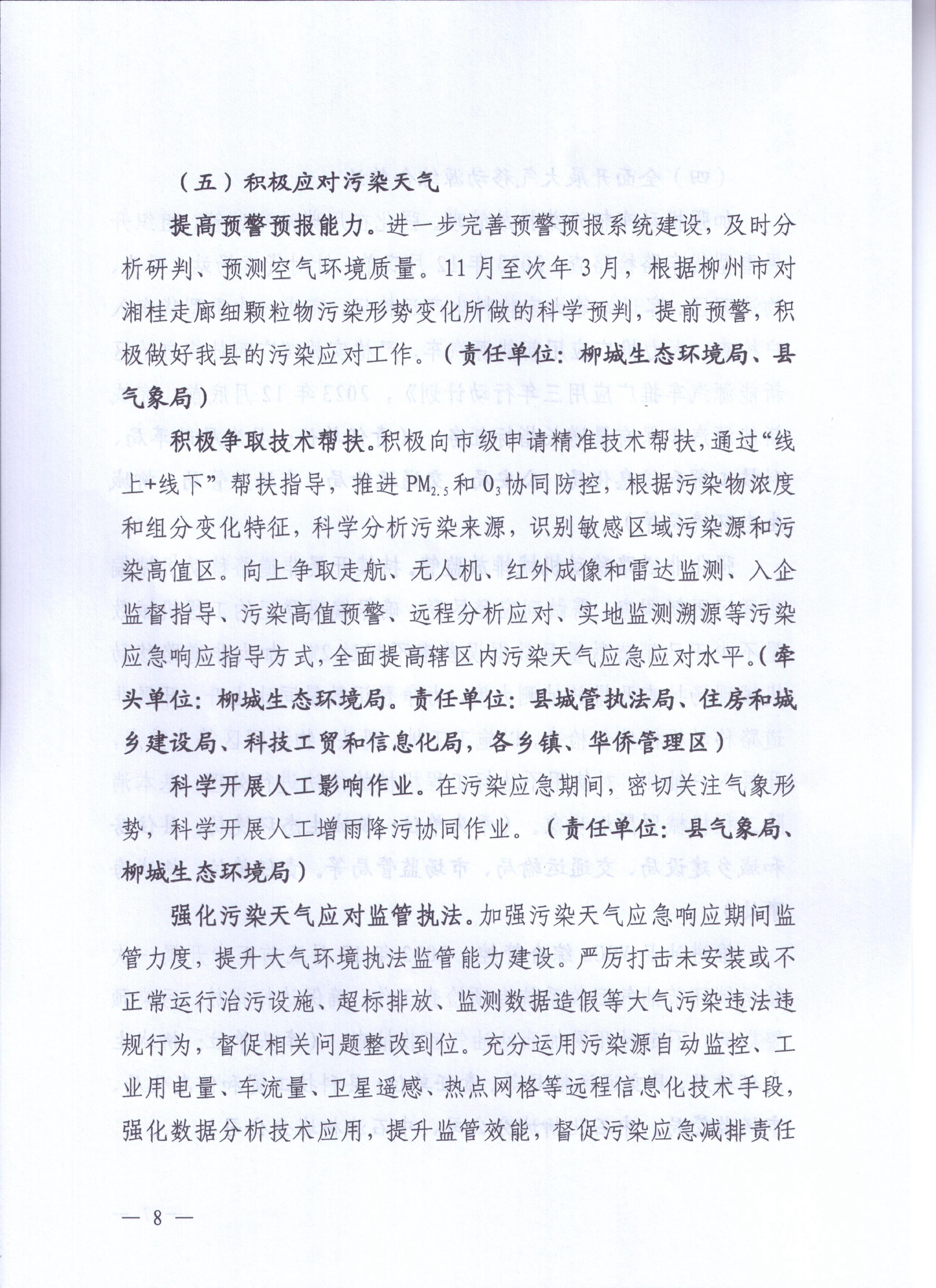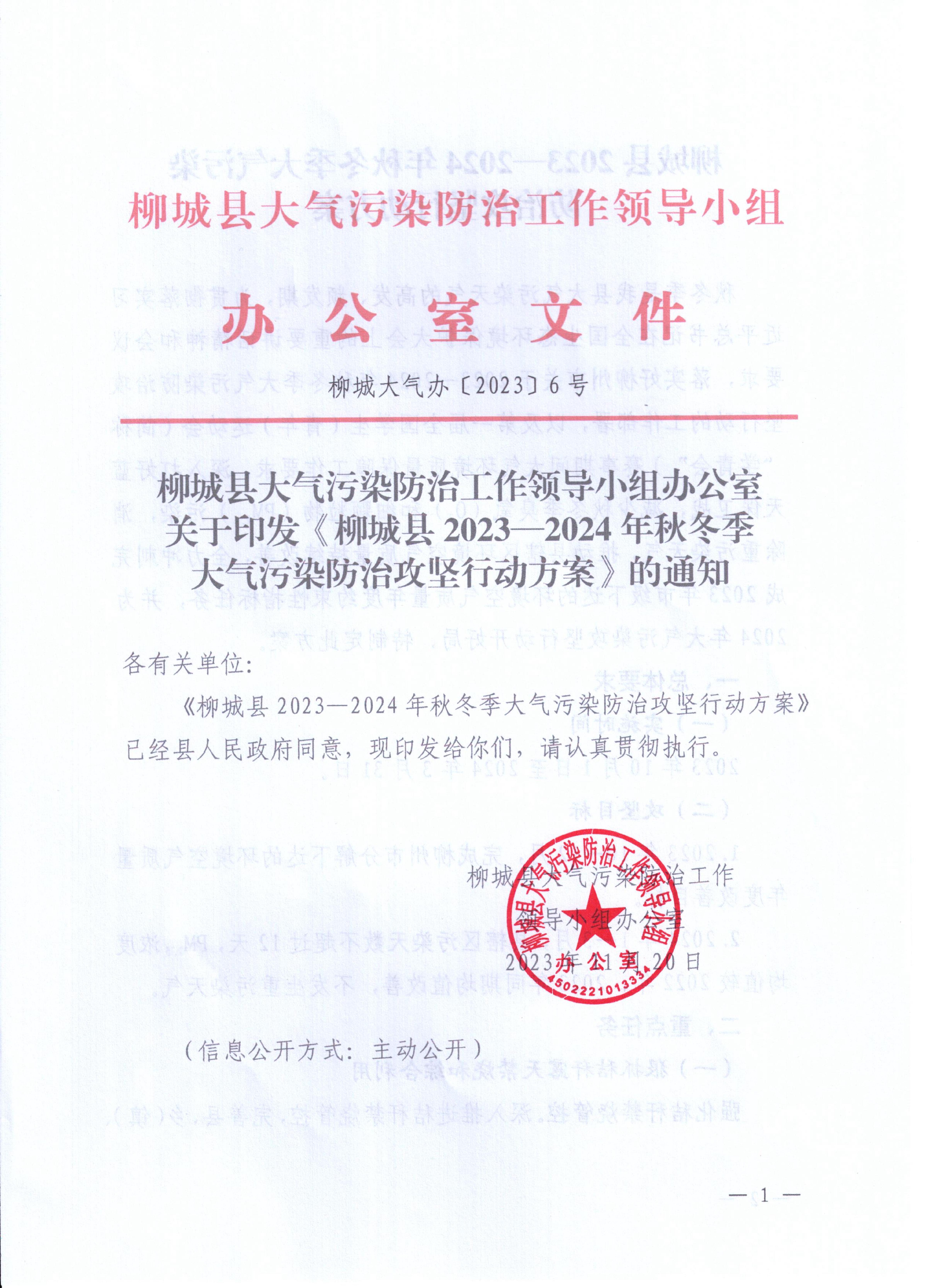 柳城大氣辦〔2023〕6號 柳城縣大氣污染防治工作領(lǐng)導(dǎo)小組辦公室關(guān)于印發(fā)《柳城縣2023-2024年秋冬季大氣污染防治攻堅(jiān)行動(dòng)方案》的通知