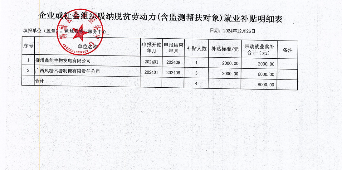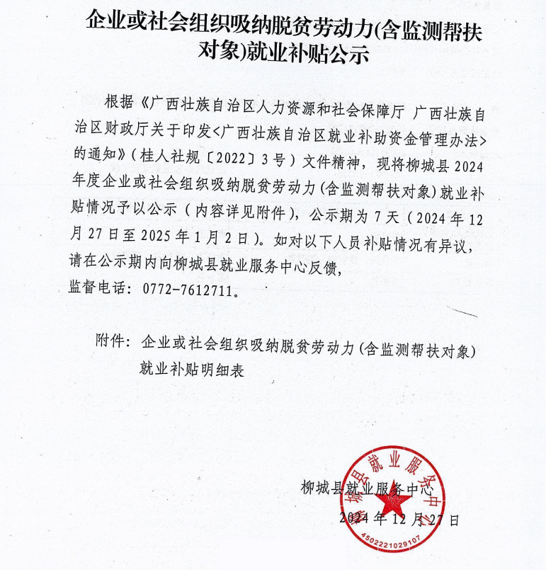 企業(yè)或社會組織吸納脫貧勞動力(含監(jiān)測幫扶對象)就業(yè)補貼公示