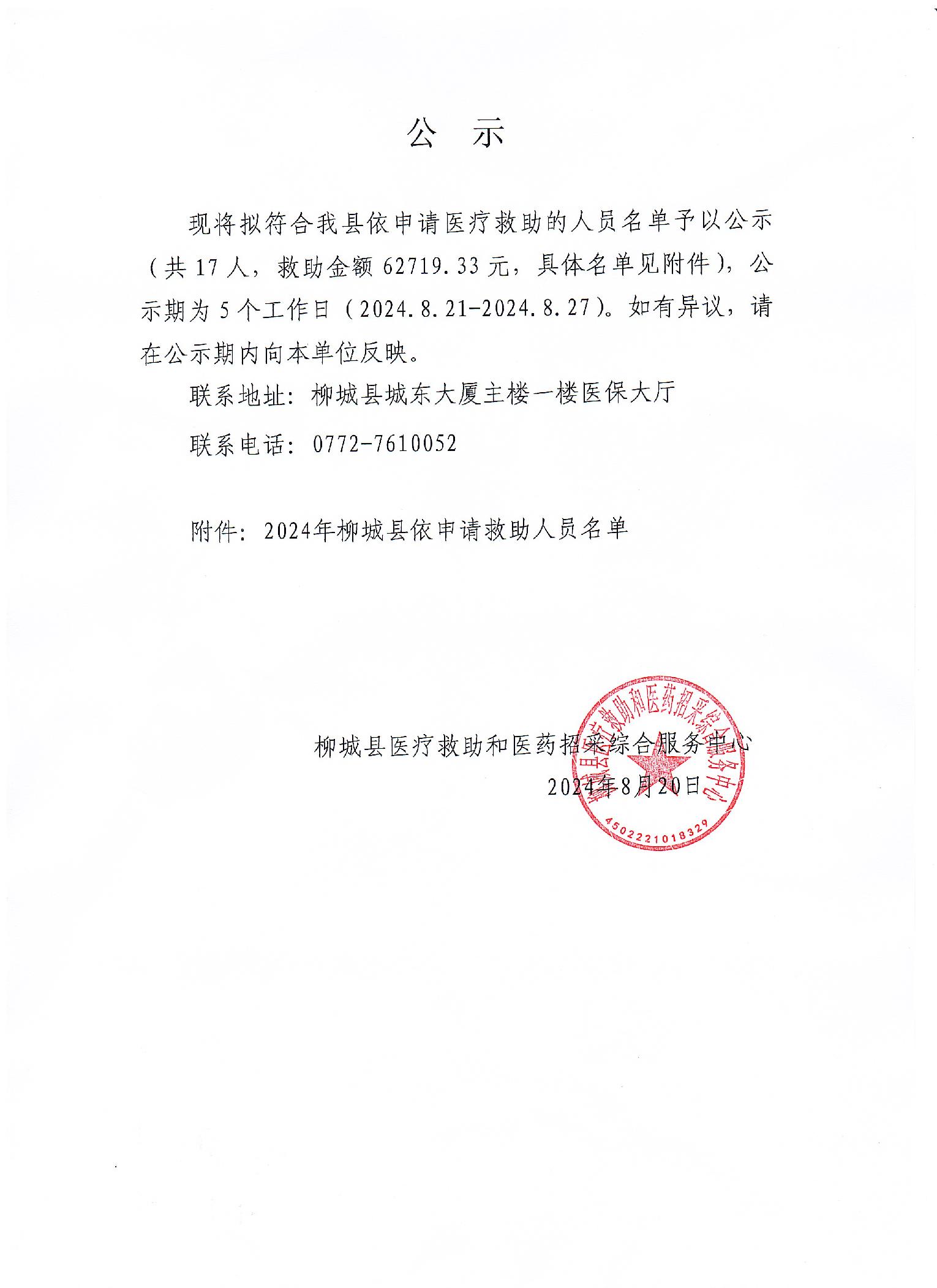 2024年柳城縣依申請救助人員名單公示(第十三批)