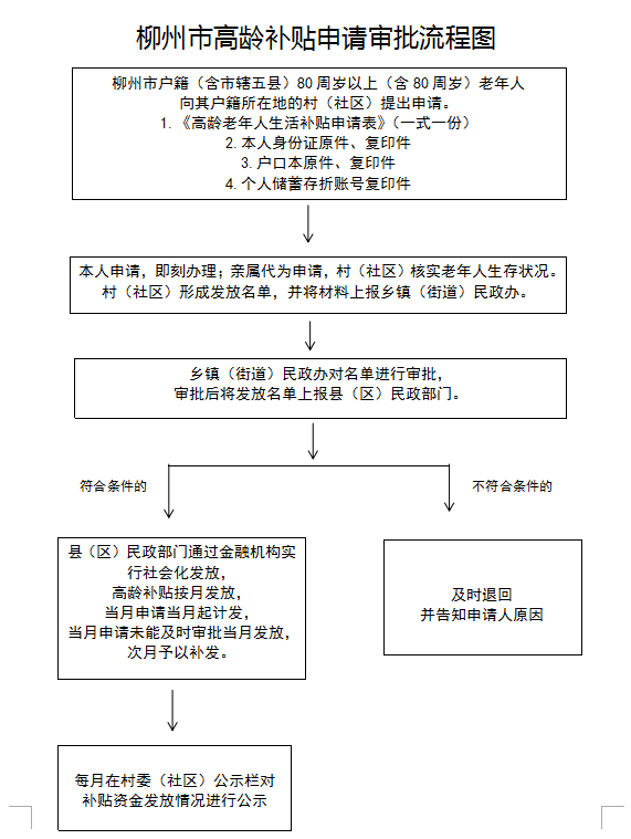2.?本人申請,即刻辦理;親屬代為申請,村(社區(qū))需入戶核實(shí)老年人生存狀況。村(社區(qū))形成發(fā)放名單,并將材料上報鄉(xiāng)鎮(zhèn)(街道)民政辦。