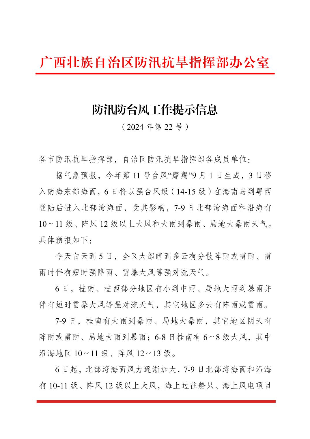 防汛防臺(tái)風(fēng)工作提示信息(第22號(hào))